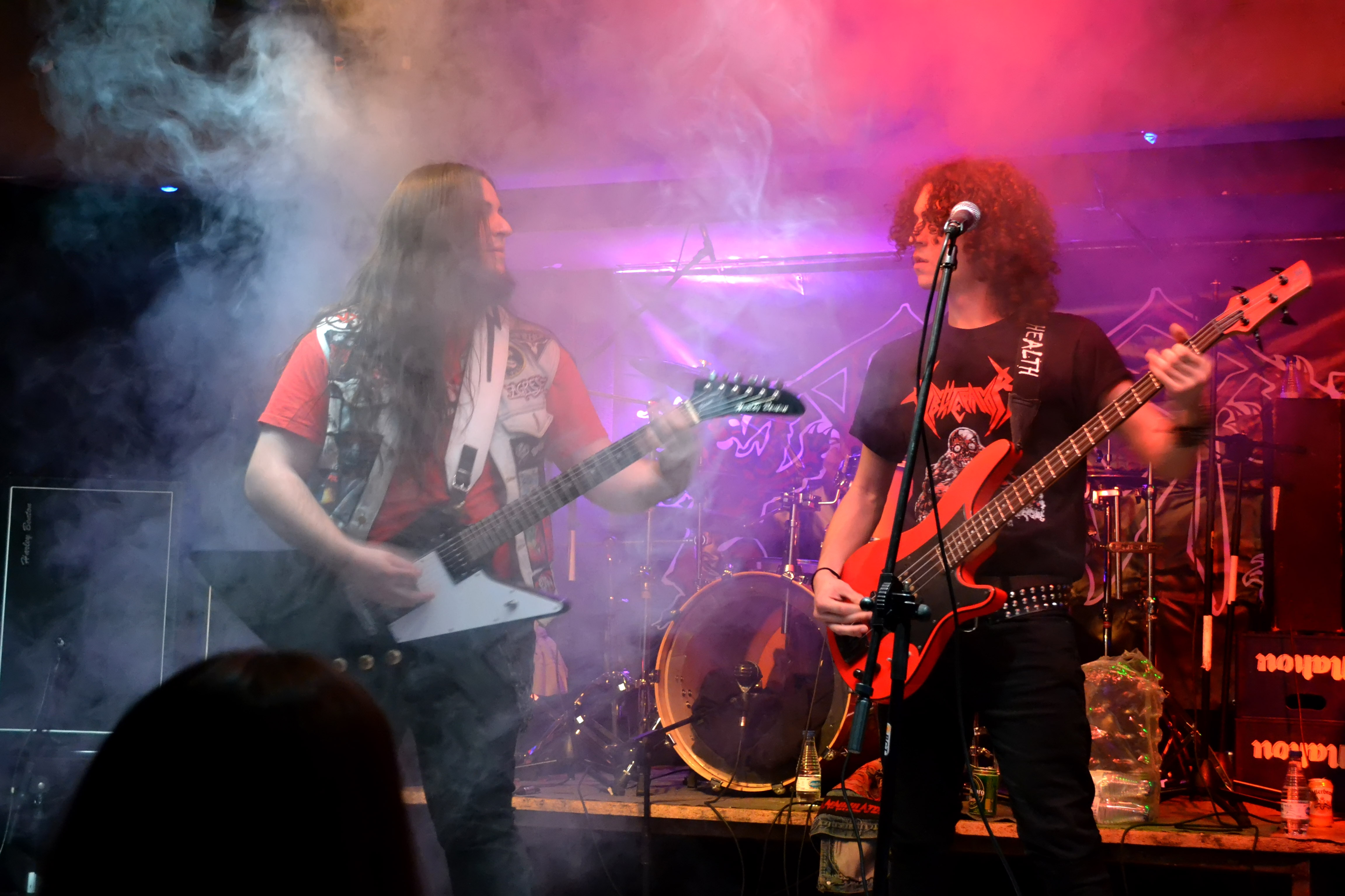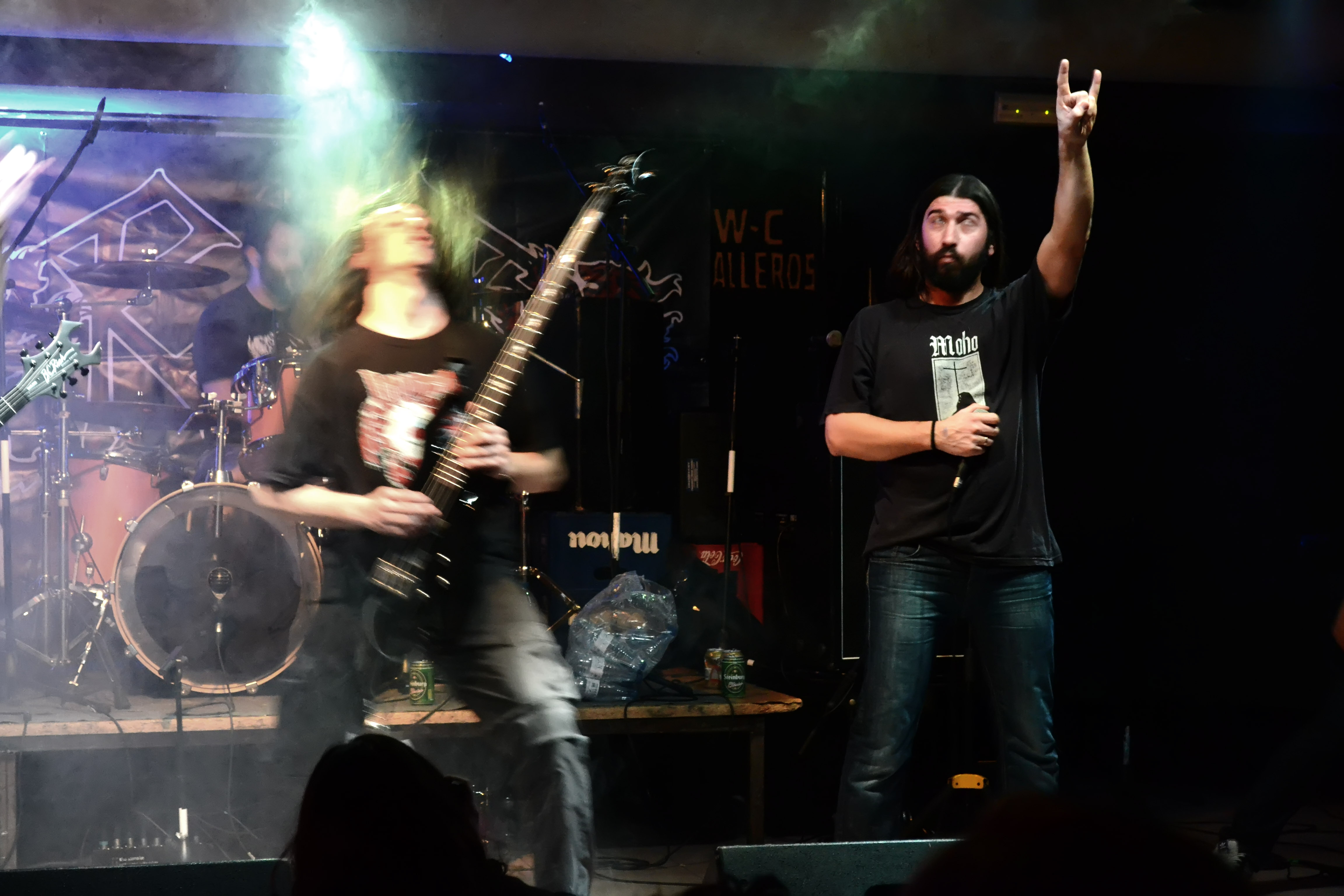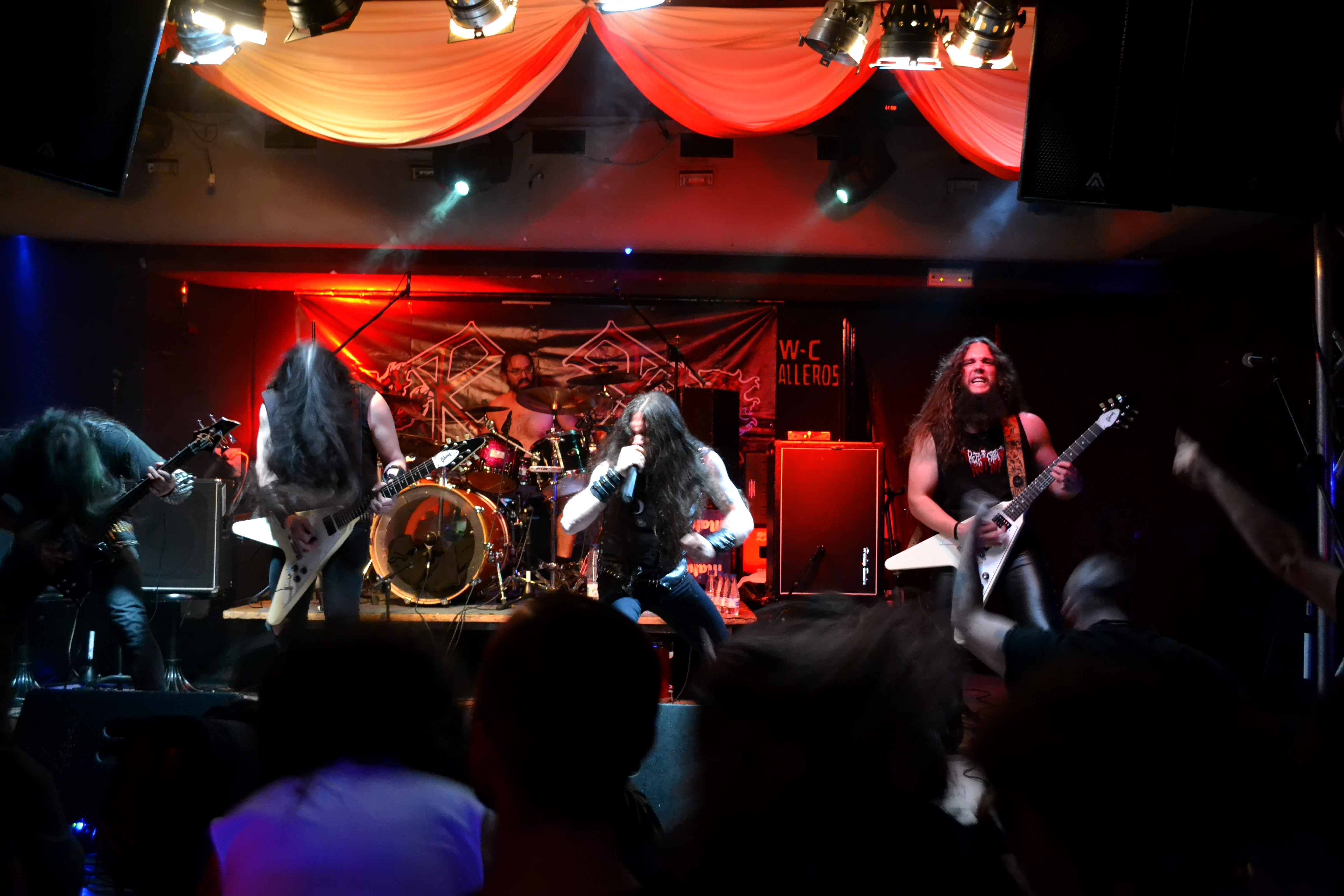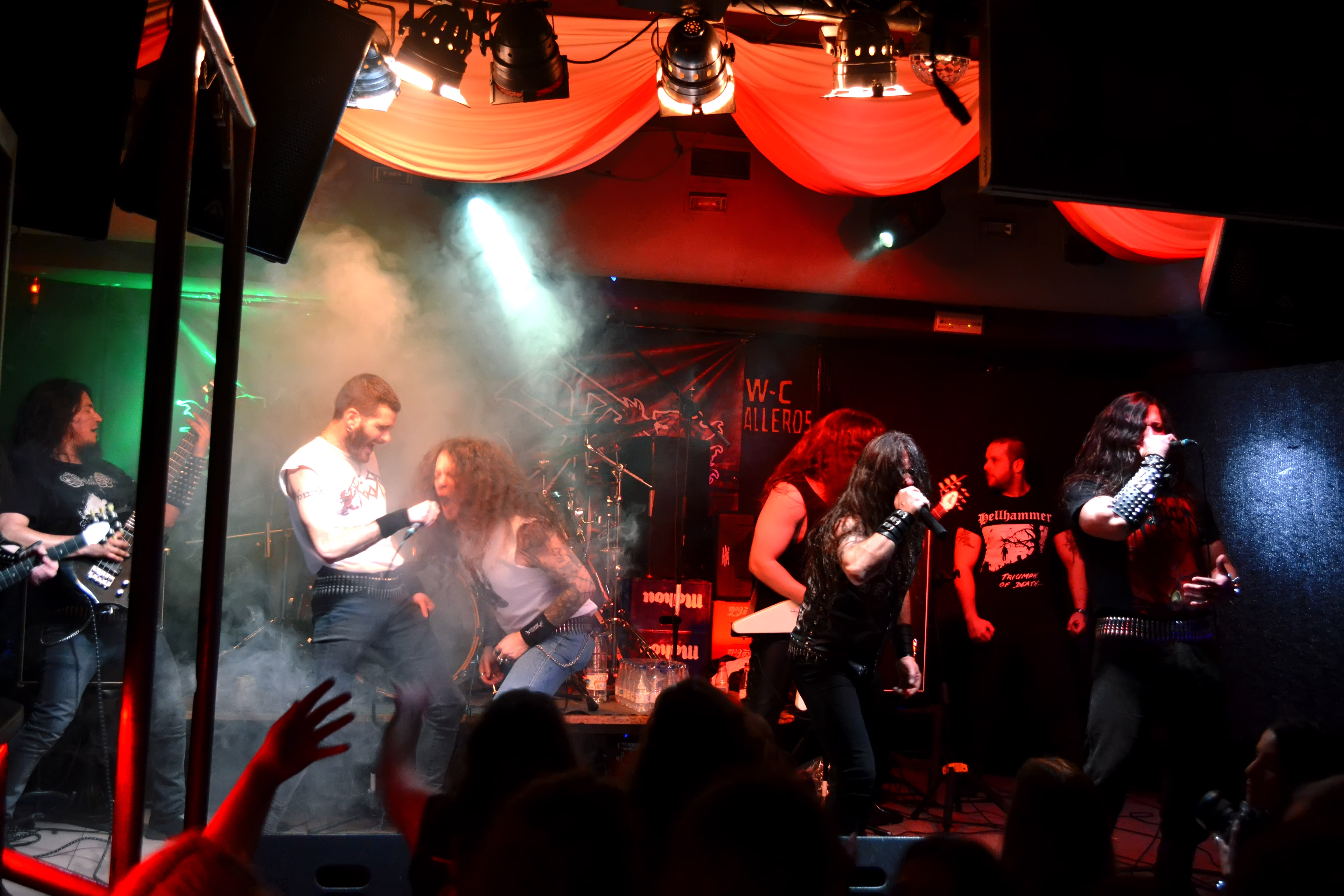 Cambio de backline y de estilo. Hacen aparición los jóvenes valencianos con una estética cuidada y acorde al sonido de su banda. Estos chicos hacen un thrash-speed metal muy old-school, rápido y afilado. Nos recordaron a clásicos como Destruction, Anthrax o los primeros Kreator. Su vocalista nos desgarra los tímpanos con una voz aguda y cañera y una actitud muy acertada sobre las tablas. No paraba de animar al público e intentar que formara parte del show, lo cual consiguió rápidamente. Su guitarra Adrián y batería Guille le ayudaron con unos coros que más bien eran punchs directos al cráneo del respetable.