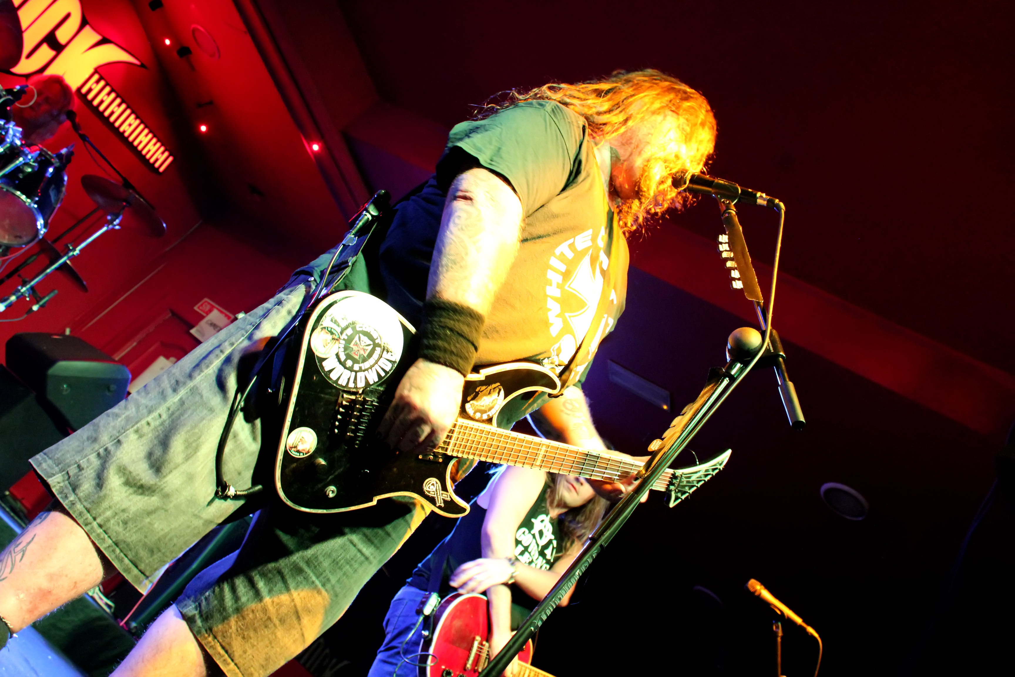 Tras un intro muy motero, con el rugir inconfundible de las “custom”, aparecen los “malos chicos” ingleses WHITE COAST REBELS. Desde el primer momento se muestran con una actitud muy macarra y demostrando toda su experiencia sobre las tarimas. Nos encantó el carácter de la banda, vacilando en cada letra y entre tema y tema al respetable, pero sin llegar a ser molestos. No paraban de moverse, animar al público y realizar sus “coreografías”, sin de